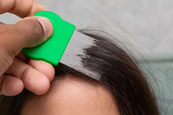 Lice spread easily from one person to another through close contact or through shared clothing or personal items, such as hats or hairbrushes. Lice cannot jump or fly. The most common symptom of lice is itching.